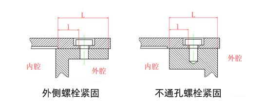 Firstly, let's take a look at the most common structure shown in Figure 1, where the flat cover plate is fastened to the flange from the outside with bolts. In this fastening method, the screw holes may be through holes or non through holes, and the shell may be on the outside or inside of the flange. Although the shape of the screw holes and the position of the shell are different, the explosion-proof parameters are the same. Obviously, in this case, there are two channels for flame propagation: the first one propagates outward along the gap of the entire plane joint surface; The other one propagates along the plane joint surface to the fastening bolt and outward from the bolt hole. Therefore, the explosion-proof surface parameters that need to be controlled for this structure include: the total effective explosion-proof surface joint width, and the distance from the inside of the hole to the edge of the flange. When the screw hole is not connected, attention should also be paid to the requirements of GB/T 3836.2-2021 for bolt head allowance to prevent the bolt from being unable to tighten without a washer.
