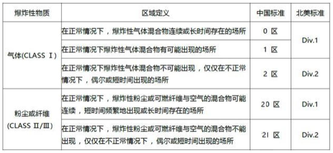 The United States and Canada first classified explosive objects scattered in the air into three classes: Class I gases and vapors; CLASS II dust; CLASS III fiber Then divide the gas and dust into groups: