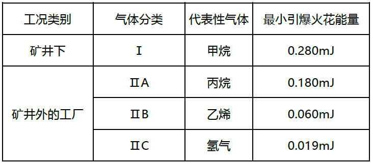 According to the minimum spark energy that may ignite, explosive gases are classified into four hazard levels in China, Europe, and most countries and regions around the world, as shown in the table below:
